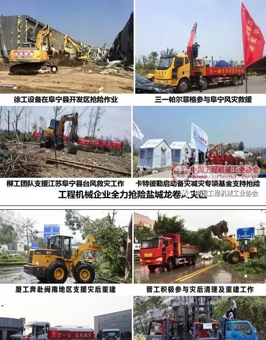 2015年底以來,深圳發(fā)生大范圍滑坡災(zāi)害、江蘇鹽城市阜寧、射陽等地出現(xiàn)強(qiáng)對流天氣、超強(qiáng)龍卷風(fēng)襲擊、閩南地區(qū)遭遇強(qiáng)臺風(fēng)“莫蘭蒂”……在這些災(zāi)害發(fā)生時,廈工、晉工、中聯(lián)重科、林德叉車、徐工、三一帕爾菲格、柳工、卡特彼勒等工程機(jī)械企業(yè)快速反應(yīng),迅速集結(jié)救援設(shè)備,第一時間投入到搶險救援中去。紛紛派出大型工程機(jī)械設(shè)備和援助隊(duì)伍加入到救援與災(zāi)后重建工作,并向?yàn)?zāi)區(qū)捐款捐物、捐贈機(jī)械設(shè)備,展現(xiàn)了工程機(jī)械行業(yè)企業(yè)一如既往的強(qiáng)烈社會責(zé)任感和崇高的奉獻(xiàn)精神。