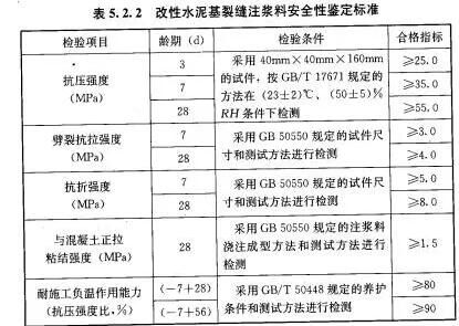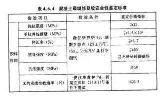 對于裂縫修補(bǔ)材料來說,其材料的安全性能指標(biāo),必須符合GB50728-2011《工程結(jié)構(gòu)加固材料安全性鑒定技術(shù)規(guī)范》的規(guī)定: