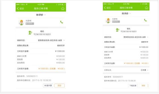 同時,中聯(lián)重科在中聯(lián)e管家APP上針對維修服務(wù)、配件在線購買也將推出電子發(fā)票相關(guān)功能,用戶能在APP中可申請開票、查看發(fā)票狀態(tài),亦可在APP上接收并下載發(fā)票。