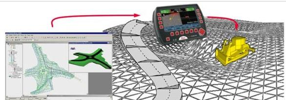 利用GNSS多系統(tǒng)聯(lián)合高精度定位,將衛(wèi)星定位的三維坐標(biāo)實(shí)時(shí)的輸入機(jī)載計(jì)算機(jī),自動生成三維數(shù)字模型,機(jī)載計(jì)算機(jī)實(shí)時(shí)比較工程機(jī)械作業(yè)端的當(dāng)前位置和設(shè)計(jì)數(shù)據(jù),并輸出校正控制信號及控制設(shè)備,對機(jī)械的作業(yè)端進(jìn)行控制,主要施工機(jī)械只需要1-2次往返施工,即可達(dá)到設(shè)計(jì)位置。