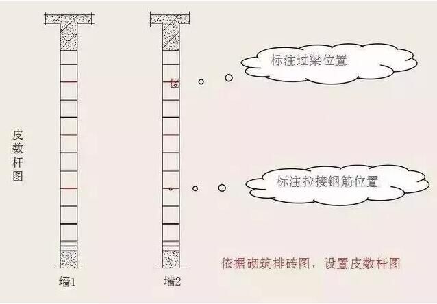 ( 2 )施工時(shí)在墻體轉(zhuǎn)角處立好皮數(shù)桿或利用混凝土墻柱做皮數(shù)桿,桿上標(biāo)明塊層、灰縫、窗臺(tái)板、門窗洞口、過(guò)梁、圈梁、預(yù)制件等的高度及位置,并應(yīng)隨時(shí)檢查其準(zhǔn)確性。
