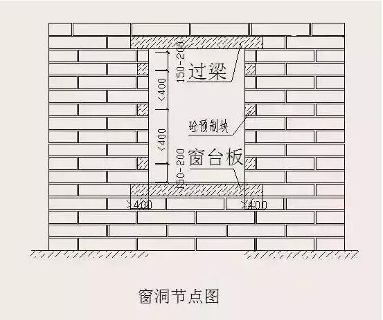 門窗洞口應(yīng)設(shè)置鋼筋混凝土過(guò)梁,過(guò)梁的截面尺寸、配筋、支座長(zhǎng)度應(yīng)根據(jù)洞口寬度按設(shè)計(jì)要求采用。當(dāng)采用預(yù)制鋼筋混凝土過(guò)梁時(shí),支座處砌體頂部應(yīng)找平,安裝時(shí)應(yīng)坐砌砂漿。洞口過(guò)梁錨固長(zhǎng)度不小于250mm。