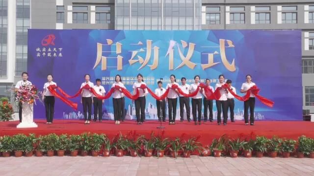 臺(tái)上領(lǐng)導(dǎo)共同為慶典儀式剪彩,將現(xiàn)場(chǎng)氣氛推向高潮。