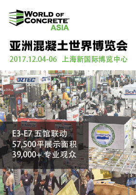 首屆亞洲混凝土世界博覽會,暨上海國際混凝土、地坪、砂漿及運動場地展覽會,將于 2017 年12 月 4 至 6 日于上海新國際博覽中心舉行。