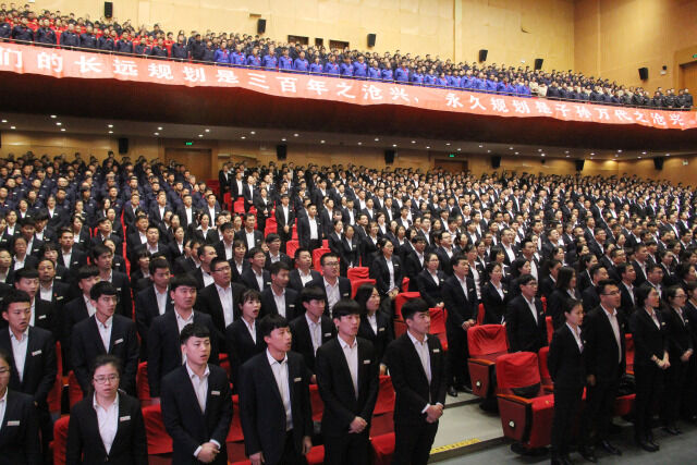 全體員工在董事長(zhǎng)楊煥成的帶領(lǐng)下敬頌滄興誓詞