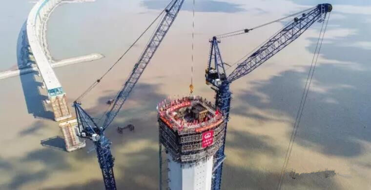 本次北側主塔施工結束后,大橋將進入鋼梁架設和斜拉索掛設施工階段。