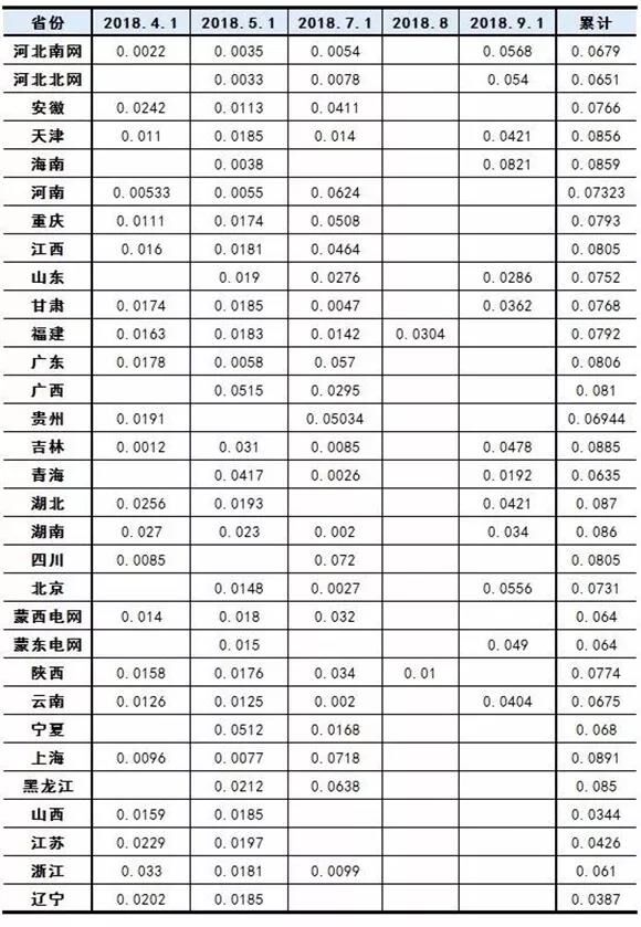 我國(guó)各省、市一般工商業(yè)電價(jià)降價(jià)情況