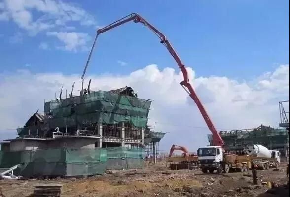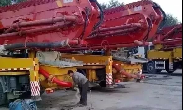 五、當(dāng)布料桿處于全部伸出并支固,不能移動車身。作業(yè)中需要移動時(shí),應(yīng)將上段布料桿折疊固定,移動速度不超過10KM/h。布料桿不得使用超過規(guī)定直徑的配管,裝接的軟管應(yīng)系防安全繩帶。