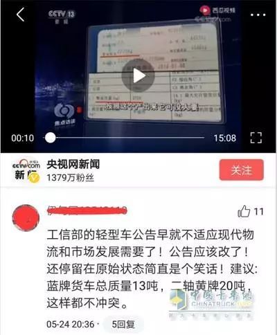 事件發(fā)酵幾日,從央視新聞的用戶留言趨向,到行業(yè)媒體的發(fā)聲,借此合理調(diào)整輕卡噸位限值的呼聲最高,讓“大噸小標”合理轉(zhuǎn)正或許是皆大歡喜的結(jié)果。