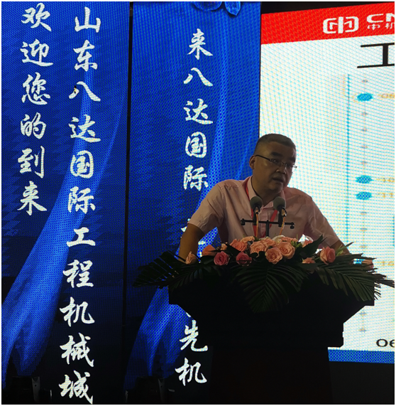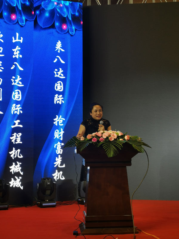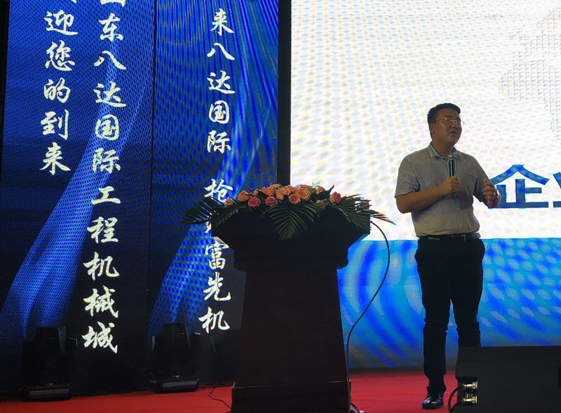 山東八達(dá)國際工程機(jī)械有限公司總經(jīng)理——于瑞杰致辭。于瑞杰總經(jīng)理表示山東八達(dá)國際工程機(jī)械始終秉承“工程建設(shè)生生不息,工程機(jī)械大有可為”的堅(jiān)定信念。全力打造國內(nèi)成交量最大的工程機(jī)械城。并通過資源、信息和客戶集中,實(shí)現(xiàn)貨比三家。讓客戶享受一站式服務(wù)得到全方位保障。我們希望通過此次大會,把更多的工程機(jī)械和配件結(jié)合起來,把更多的買家請進(jìn)來,通過公平、公正、公開的交易,讓成交更快捷、更容易、更方便!