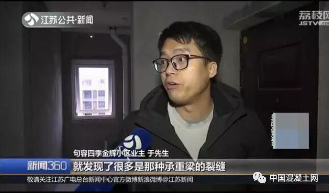 句容市建設(shè)工程質(zhì)量監(jiān)督站工程監(jiān)督二科科長(zhǎng)黃躍福:這部分是框架剪力墻的裂縫,是混凝土結(jié)構(gòu)的嚴(yán)重質(zhì)量缺陷。