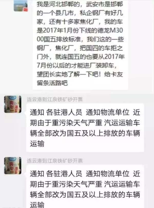 河南漯河、周口、洛陽等不少城市目前《重污染天氣應急預案》錯峰生產(chǎn)、限制生產(chǎn)甚至暫停生產(chǎn),同時禁止工業(yè)企業(yè)、物流(除民生保障類)使用國四及國四以下的重型載貨汽車(含燃氣)進行運輸。 漯河市交通局收到督辦令,對全市1.3萬輛重型載貨汽車進行清查,對在漯車輛實施封存;同時對運輸企業(yè)停放的外地籍國四及以下重型載貨汽車(含燃氣)實施封存,所有車輛于12月9日24時全部封存完畢。 濟南《2019-2020年度重點行業(yè)秋冬季差異化錯峰生產(chǎn)工作方案》:橙色及以上預警期間禁止使用國四及以下重型載貨車輛(含燃氣)進行物料運輸,可不再對生產(chǎn)線采取減排措施。 朔州市《2019-2020年秋冬季工業(yè)企業(yè)錯峰生產(chǎn)實施方案》:鋼鐵、建材、電力、化工、煤炭等涉及大宗原材料及產(chǎn)品運輸?shù)闹攸c用車企業(yè)一律實施錯峰運輸。重點用車企業(yè)要合理安排運力,封存自有車隊中排放較高的車輛,優(yōu)先選擇排放控制水平較好的國五以上標準車輛承擔運輸任務。有條件使用鐵路運輸?shù)?,原則上全部采用鐵路運輸。 寧夏《關于2019-2020年冬春季部分重點工業(yè)行業(yè)開展錯峰生產(chǎn)的通知》:要督促鋼鐵、建材、焦化、有色、化工、礦山等涉及大宗物料運輸?shù)闹攸c企業(yè)和城市物流配送企業(yè)制定錯峰運輸方案,原則上不允許柴油貨車在重污染天氣預警響應期間進出廠區(qū)(保證安全生產(chǎn)運行、運輸民生保障物資或特殊需求產(chǎn)品的國五及以上排放標準的車輛除外)。 山西省《落實2019-2020年秋冬季大氣污染綜合治理工業(yè)企業(yè)錯峰生產(chǎn)》:完成治理任務且列入工業(yè)和信息化部綠色工廠示范的企業(yè)、污染物排放達到超低排放標準(沒有超低排放標準的行業(yè),污染物排放低于行業(yè)特別排放限值20%以上)且物料運輸采用鐵路運輸或其他清潔運輸方式的企業(yè)(其中,焦化企業(yè)必須采取干法熄焦)、滿足生態(tài)環(huán)境部《關于加強重污染天氣應對夯實應急減排措施的指導意見》要求的A級企業(yè),可列入豁免清單,不參與錯峰。 新疆《關于自治區(qū)重點行業(yè)采暖期實施錯峰生產(chǎn)的通知》:鋼鐵行業(yè)將大宗物料和產(chǎn)品主要通過鐵路、管道、新能源汽車運輸?shù)牧腥肱欧艠藴?/strong>。 棗莊市《2019-2020年秋冬季重點行業(yè)差異化錯峰生產(chǎn)實施方案》:達到《山東省建材工業(yè)大氣污染物排放標準》(DB37/2373-2018)表2規(guī)定重點控制區(qū)特別排放限值,全部完成無組織排放治理,新能源汽車或國五及以上標準的汽車運輸比例達到80%及以上,在2019年12月1日至2020年1月31日停產(chǎn)。 河南省《河南省區(qū)域環(huán)境空氣質(zhì)量預報》第(2019)300期文件稱11月1日起,全省大部分地區(qū)有PM2.5中度或重度污染過程。河南省環(huán)境監(jiān)測中心建議安陽、鶴壁、新鄉(xiāng)、焦作、濮陽、鄭州、開封、洛陽、濟源、許昌、平頂山、商丘、周口等地加強本地區(qū)分析研判 ,及時啟動相應級別預警。據(jù)貨運行業(yè)反饋,河南省上述城市均開啟了重污染天氣應急響應,禁止國四及國四以下車輛進廠裝卸貨。 南京市《南京市明確下半年大氣污染防治攻堅措施》:在繞城高速公路合圍區(qū)域內(nèi),對高排放車輛實施限行。嚴格控制每日外地入城柴油貨車通行證數(shù)量,國四及以上排放標準的,方可辦理入城通行證。 淄博市《博山區(qū)2019年夏秋季工業(yè)企業(yè)錯峰生產(chǎn)實施方案》:企業(yè)物料產(chǎn)品主要使用鐵路、水路、管道等綠色運輸;使用公路運輸?shù)男履茉雌嚮驀募耙陨蠘藴实钠囘\輸比例達到80%及以上,在車輛出入口安裝視頻監(jiān)控系統(tǒng),并建立車輛運輸臺賬。