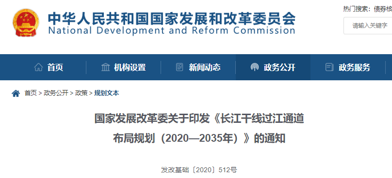 ??《長江干線過江通道布局規(guī)劃(2020—2035年)》(以下簡稱《規(guī)劃》)業(yè)經(jīng)國務(wù)院批準(zhǔn),現(xiàn)印發(fā)給你們,請按照執(zhí)行,并就有關(guān)事項(xiàng)通知如下: