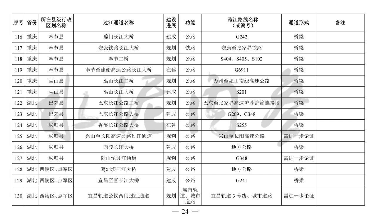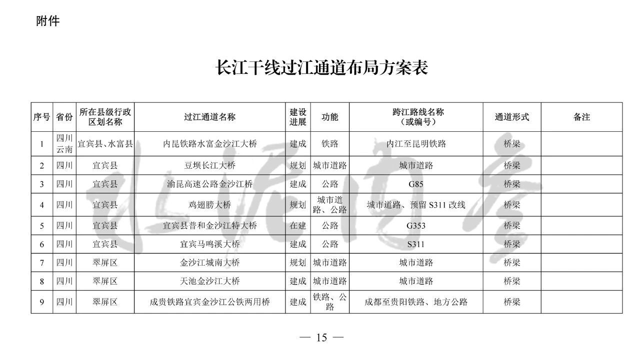 ??四、本《規(guī)劃》主要布局橫跨長江干線主要航道、具有交通功能的過江通道項(xiàng)目,對于連接洲島與沿岸、洲島之間的通道項(xiàng)目和不具備交通功能的跨江、沿江建筑物,由省級發(fā)展改革委統(tǒng)籌布局編制相關(guān)規(guī)劃報送我委銜接后組織實(shí)施。