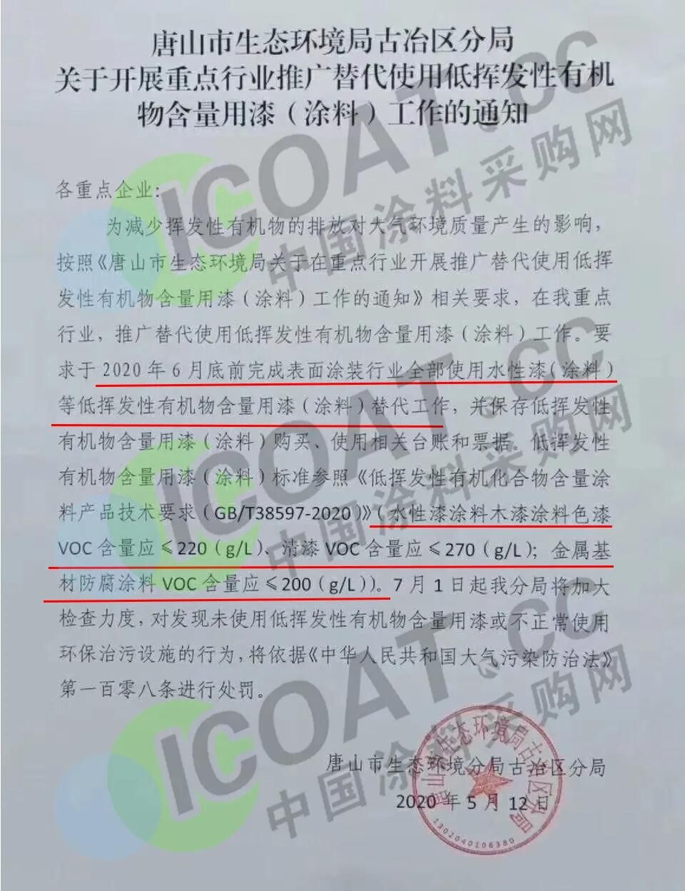 摘要:近幾年,涂料行業(yè)的“油改水”做的轟轟烈烈,全國各地也陸續(xù)出臺很多支持政策,但是總是雷聲大雨點(diǎn)小,很多政策模棱兩可,讓從業(yè)者無所適從,而近日河北唐山市生態(tài)環(huán)境局古冶區(qū)分局發(fā)布了一則重要通知,明確了使用水性漆的截止日期,并同步了處罰依據(jù),為水性涂料行業(yè)打入一劑強(qiáng)心劑。通知如下: