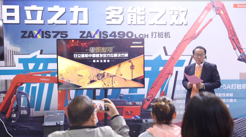 除了劍指未來的重磅產(chǎn)品和解決方案,日立建機(jī)還展示了在中國市場廣受歡迎的兩款新品——ZX490LCH-5A打樁機(jī)和專為土方作業(yè)用戶打造的ZX75-5A小型液壓挖掘機(jī)。ZX490LCH-5A傳承日立打樁機(jī)的家族品質(zhì),HIOSⅢ液壓系統(tǒng)和雙泵合流系統(tǒng)帶來人機(jī)合一的高效體驗(yàn),強(qiáng)化型動臂油缸可加強(qiáng)打樁、拔樁的力量,適用于各類市政基坑支護(hù)等大中型工程。