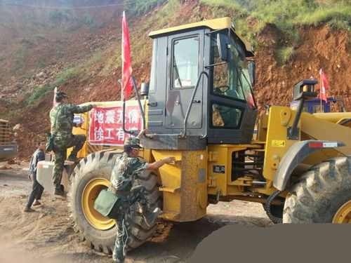 趕到災(zāi)區(qū)的徐工救援隊指揮徐楠聯(lián)系上當(dāng)?shù)卣筒筷?,在辦理好登記等相關(guān)手續(xù)后,積極請戰(zhàn)要求分派任務(wù),主動要求到最困難和最需設(shè)備的地方。中國武警部隊第三總隊領(lǐng)導(dǎo)經(jīng)過現(xiàn)場開會部署,決定臨時征用徐工一臺裝載機加入武警救援部隊。