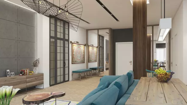 由于這間公寓的采光非常良好,大量使用工業(yè)風(fēng)元素,像是水泥粉光地板、裸露天花管線、不銹鋼廚房臺面,也不會感到冰冷,反而在木地板、木作家具的襯托下,搭配原木百葉透進(jìn)的光線,呈現(xiàn)原始質(zhì)樸的感覺。