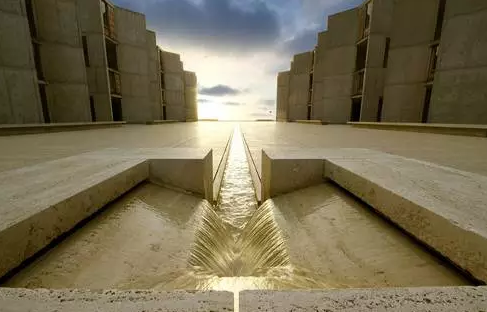 路易斯·康設(shè)計(jì)的加利福尼亞索爾克研究所,是一件大師級的作品。這里既是“具有學(xué)術(shù)氛圍的隱居之所”,也是科學(xué)研究的靈感之地。混凝土的澆筑,利用了從羅馬建筑研究汲取的技術(shù)。為了充分體現(xiàn)混凝土材料的特色,建筑師在材料設(shè)計(jì)完成后沒有再做任何的裝飾。