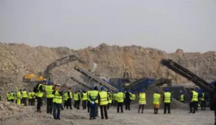 工地參觀也是此次論壇的重要環(huán)節(jié)。全體嘉賓來到山東淄博依廠礦業(yè)的石灰石采石場,近距離了解克林曼移動式破碎篩分設(shè)備的性能及生產(chǎn)出的骨料質(zhì)量。