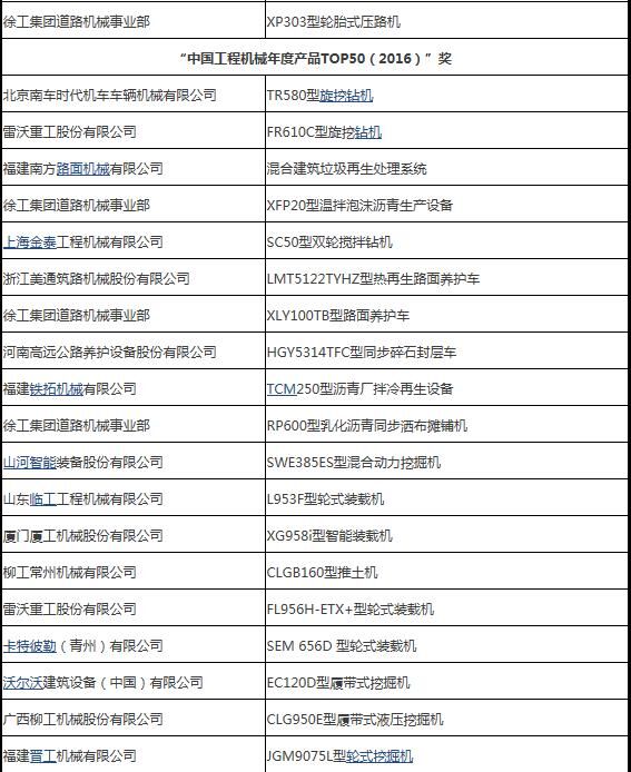 2016年3月31日,“2016工程機(jī)械產(chǎn)品發(fā)展(北京)論壇暨中國(guó)工程機(jī)械年度產(chǎn)品TOP50頒獎(jiǎng)典禮”在北京隆重舉行。來(lái)自中國(guó)工程機(jī)械工業(yè)協(xié)會(huì)及下屬分支機(jī)構(gòu)、國(guó)家工程機(jī)械質(zhì)量監(jiān)督檢驗(yàn)中心、相關(guān)行業(yè)協(xié)會(huì)以及工程機(jī)械制造企業(yè)、施工企業(yè)、科研機(jī)構(gòu)、高校、新聞媒體的200余位嘉賓參加了這次年度盛會(huì)。