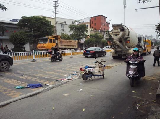 事故的過程被附近一家商店的監(jiān)控探頭拍下。根據(jù)監(jiān)控錄像顯示,事發(fā)當(dāng)天上午11時(shí)許,混凝土車和電動(dòng)車都是從福清市區(qū)開往??阪?zhèn)方向,當(dāng)電動(dòng)車行駛至事發(fā)路段時(shí),可能為了避讓前方一輛逆行的拉煤球的板車,騎電動(dòng)車的女子便向左拐,突然間被后方快速行駛的混凝土車撞倒碾壓,女子當(dāng)場(chǎng)倒在血泊中。整個(gè)過程大約持續(xù)10秒鐘。