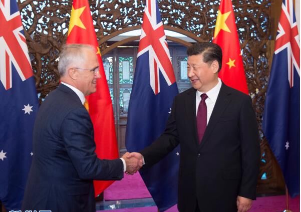 習近平指出,當前,中澳關(guān)系保持積極發(fā)展勢頭,兩國各領(lǐng)域交流合作日益密切。中澳全面戰(zhàn)略伙伴關(guān)系具有強勁活力,雙方要把握兩國關(guān)系發(fā)展正確方向,尊重彼此核心利益和重大關(guān)切,確保中澳關(guān)系持續(xù)健康穩(wěn)定發(fā)展。希望雙方做好中方“一帶一路”倡議同澳方“北部大開發(fā)”計劃、中國創(chuàng)新驅(qū)動發(fā)展戰(zhàn)略同澳方“國家創(chuàng)新與科學議程”的對接,實施好中澳自由貿(mào)易協(xié)定,探討開展更多務(wù)實合作項目,推進司法執(zhí)法、防務(wù)等領(lǐng)域交流合作。
