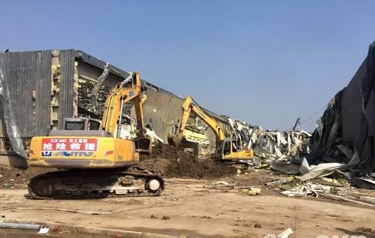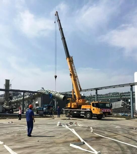 23日下午,由6名人員、4臺(tái)起重機(jī)、1臺(tái)挖掘機(jī)和兩輛服務(wù)車組成的救援小分隊(duì)趕到鹽城阜寧縣災(zāi)區(qū),緊急與當(dāng)?shù)鼐仍渚⒄〉寐?lián)系,聽從統(tǒng)一指揮,全力投入現(xiàn)場(chǎng)搶險(xiǎn)。