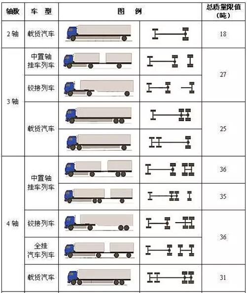 按照《道路車輛外廓尺寸、軸荷及質(zhì)量限值》確定的最大質(zhì)量限值作為認(rèn)定標(biāo)準(zhǔn)。其中,最大的變化是6軸車由55噸變?yōu)?9噸。