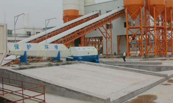 該系統(tǒng)主要由:攪拌車加水清洗裝置,溜槽輸送裝置,砂石漿水分離裝置,和泥漿水后處理裝置組成?;炷凛斔驮O(shè)備清洗后,將殘余混凝土排入溜槽中,在高壓水流沖擊下,經(jīng)溜槽進(jìn)入砂石分離機(jī),在不斷旋轉(zhuǎn)的分離機(jī)作用下,對(duì)混凝土進(jìn)行充分的清洗,同時(shí)將砂、石進(jìn)行分離,分離后的砂、石在導(dǎo)料葉片的作用下背向流動(dòng),再通過(guò)提升式出料口排出分離機(jī),分別堆放。清洗后的漿水從分離機(jī)的底部排出進(jìn)入沉淀池逐級(jí)沉淀后循環(huán)使用或進(jìn)入攪拌池回收利用。進(jìn)入攪拌池(一般情況2個(gè)攪拌池)的漿水為了防止沉淀凝固,需通過(guò)攪拌器的作用,攪拌器的工作為間歇式。分離出水泥漿在連續(xù)的攪拌器作用下,再通過(guò)高壓污水泵輸送到攪拌樓中待生產(chǎn)計(jì)量再利用。整個(gè)控制系統(tǒng)設(shè)有手動(dòng)和自動(dòng)控制,方便控制設(shè)置,整個(gè)系統(tǒng)運(yùn)行可靠,故障率低,維護(hù)量少等特點(diǎn)。