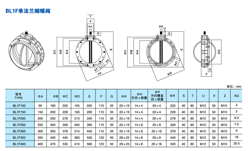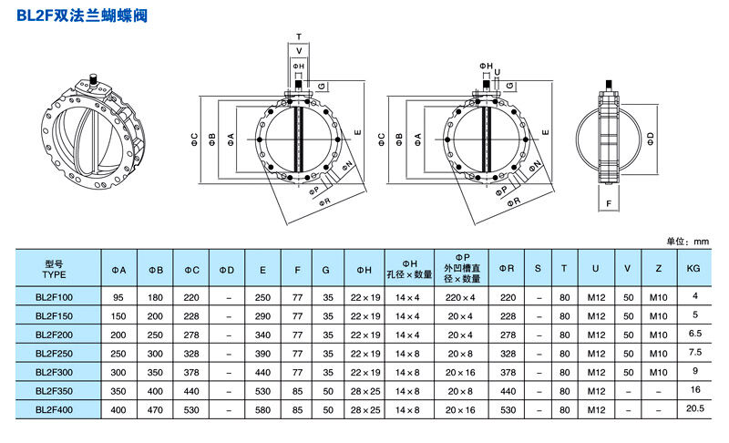 粉體專用蝴蝶閥(安裝尺寸圖)
