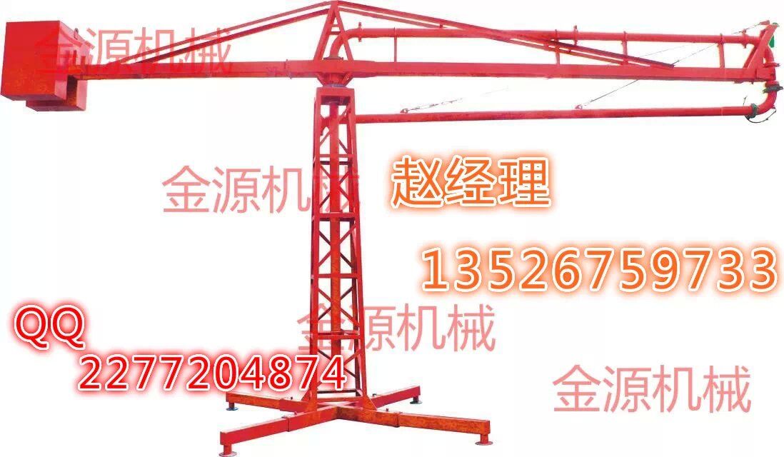 結(jié)構(gòu):、插銷、立架、構(gòu)成的底座是固定部分,其上通過回轉(zhuǎn)支承與上部回轉(zhuǎn)部分相連,上主梁架、平衡臂、平衡臂架拉桿、上橫桿組成后回轉(zhuǎn)部分。立管上有回轉(zhuǎn)卡篐接頭。通過人力拉動,可使整個回轉(zhuǎn)部分回轉(zhuǎn)360度。上梁主架前端連接有一個回轉(zhuǎn)支座與前橫桿、前拉桿組成前回轉(zhuǎn)部分,在人力拉動下可繞回轉(zhuǎn)支座旋轉(zhuǎn)300度。由兩部分回轉(zhuǎn)架組成的合成運(yùn)動就能覆蓋所有布料半徑范圍的布料點(diǎn)。