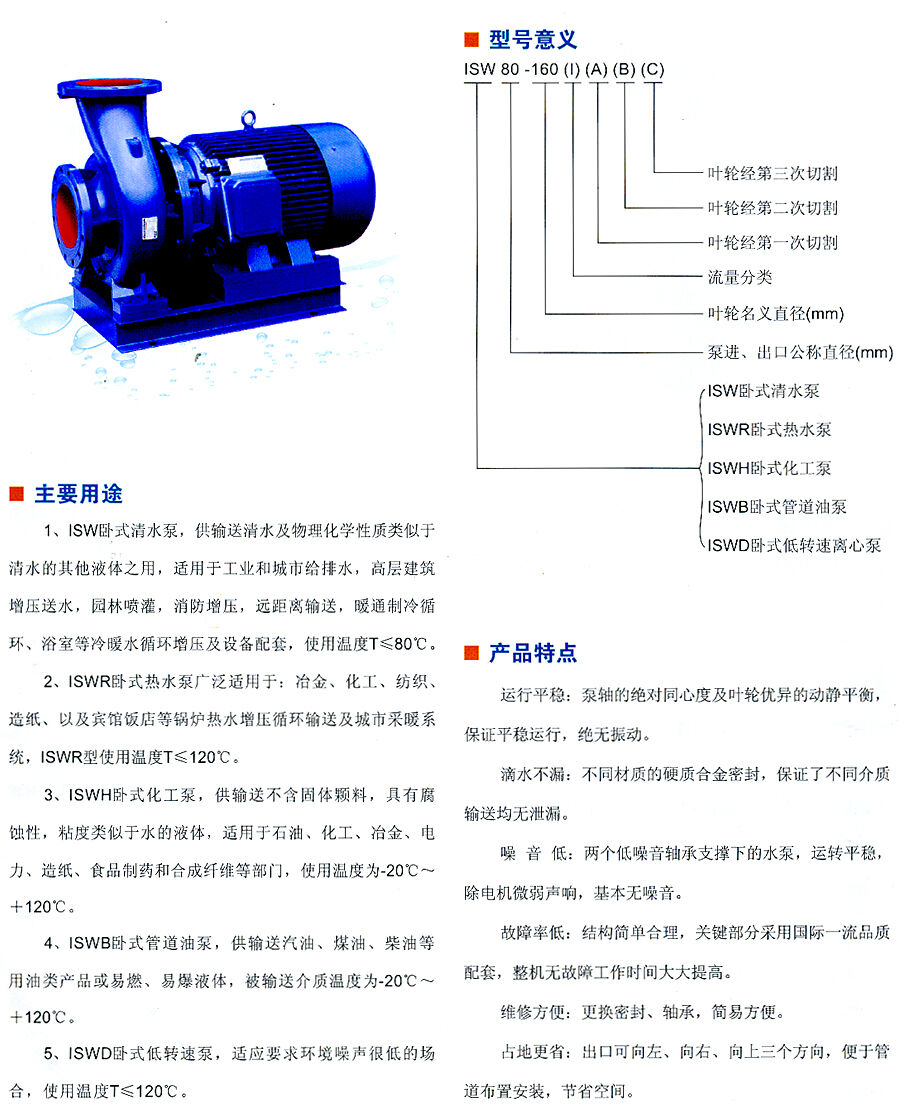 歸屬行業(yè):ISW系列臥式離心泵