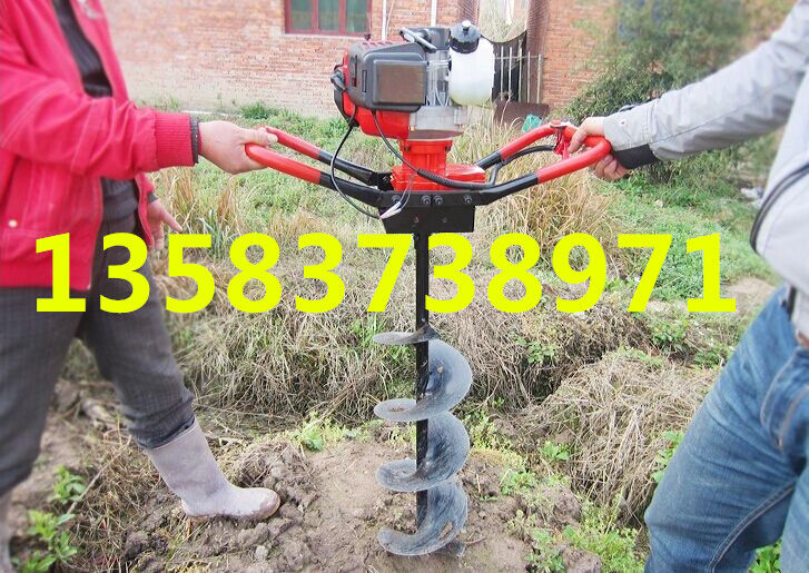 地鉆由小型通用汽油機,齒輪箱及特殊設(shè)計的鉆具組成.適合在土地,凍土,冰層上打孔.廣泛用于園林,種植,植樹,物探,道路建設(shè)等領(lǐng)域  2.鉆頭采用錳鋼合成更加的堅硬。對硬土質(zhì),超硬土質(zhì),粘土,凍土等都能工作。   3.地鉆可根據(jù)樹種,選配多種規(guī)格的鉆頭,以滿足用戶需要。 4.地鉆能夠讓人們從繁重的體力勞動解放出來,廣泛應(yīng)用于植樹造林,栽種果林、籬笆、及秋季給果樹施肥等。適合各種地形,效率高,便于攜帶及野外田地作業(yè)。   5.地鉆既可以單人操作,又可雙人操作,經(jīng)濟實用。   注意事項:1.使用正品2T(二沖程)FC級機油,嚴(yán)禁使用4T(四沖程)機油。   2.嚴(yán)禁使用純汽油。   3.嚴(yán)格按251的比例兌油. 4.新機器不可高速使用,請低速磨合3小時。   5.嚴(yán)禁在高速的時候突然關(guān)停發(fā)動機,否則會使下次開機啟動困難。   6.感覺機器震動異常,請立即停機檢查,是否破損,松動,偏心。   7.嚴(yán)禁在有亂石堆的草地上使用。   8.鉆頭有嚴(yán)格的尺寸限制,嚴(yán)禁私自改裝或使用增大號鉆頭. 9.每工作一段時間清除火花塞、消音器積碳,清洗空氣濾清器,向齒輪箱加注黃油。   10.遇到問題自己無法解決的,不要私自拆裝。   11.機器長時間不用時,應(yīng)該將剩余的燃油倒出,然后發(fā)動機器將化油器內(nèi)的燃油全部燃燒干凈。   12.想讓機器運轉(zhuǎn)更穩(wěn)定,壽命更長請經(jīng)常保養(yǎng)。   安全事項:   A.人身安全:嚴(yán)禁在室內(nèi)添加汽油,嚴(yán)防火災(zāi);機器運行時,嚴(yán)禁手腳靠近鉆頭;清理或檢查機器時必須停機。   B.機器安全:地鉆起動前必須清理草坪上的雜物,確保機器安全運轉(zhuǎn)。