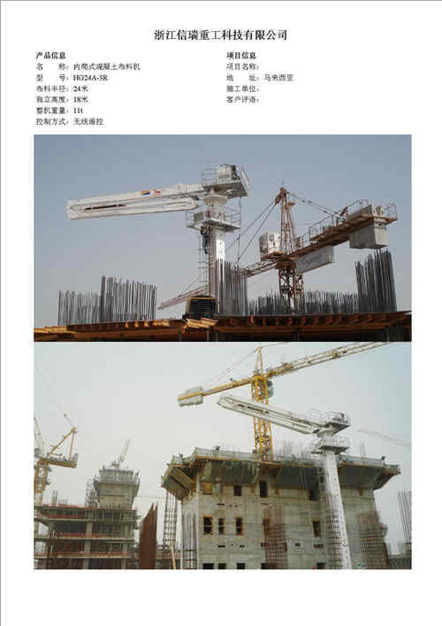 歸屬行業(yè):信瑞重工HG24A-3R樓面內(nèi)爬混凝土布料機(jī)