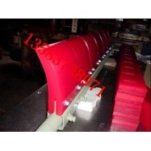 H型高分子聚氨酯清掃器 適用于清掃卸載滾筒處皮帶上粘附的物料,可分雙向刀頭和單向刀頭 屬于頭道清掃器。可自動調(diào)節(jié)清掃器刮板與輸送機(jī)膠帶之間的接觸壓力,保證了刮板與運(yùn)行的膠帶受力在一定合適的范圍之內(nèi),使清料既干凈,又不損壞膠帶。