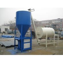 過傳感器的數(shù)據(jù)反饋,實(shí)現(xiàn)原料計量。計量好后的物料,通過螺旋輸送機(jī)導(dǎo)進(jìn)主斗提機(jī),提升到混合機(jī)上部待混料倉中。待混倉為氣動大開門型,可以迅速將待混物料放入無重力