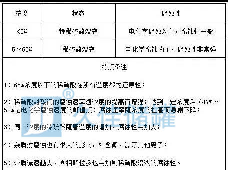 不同濃度的硫酸,其腐蝕性具有如下突出特征: