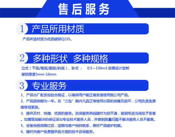 我們公司并可根據(jù)客戶要求制作來圖來料加工防腐儲罐。工程質(zhì)量達到經(jīng)濟、合理、可靠、可信和優(yōu)良的標準。讓您滿意是我們的追求。為您服務是我們的職責?!百|(zhì)量是企業(yè)生存的命脈 ;信譽是廠家發(fā)展的階梯?!?讓利客戶、規(guī)格生產(chǎn)、成本降低、統(tǒng)一銷售。歡迎廣大客戶來函、來電、來樣咨詢訂購,讓您買的放心用得安心,與您攜手共創(chuàng)輝煌。