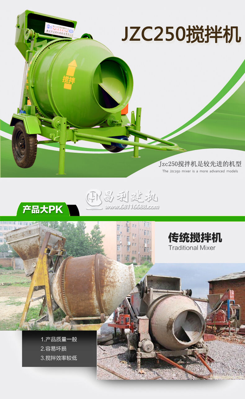 歸屬行業(yè):昌利jzc250滾筒式混凝土攪拌機