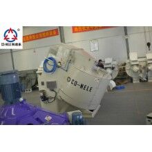 CQM系列高效強(qiáng)力混合機(jī)在強(qiáng)力混合機(jī)的料盤(pán)中,偏心安裝攪拌星與高速轉(zhuǎn)子。料盤(pán)以低速順時(shí)針?lè)较蛐D(zhuǎn),連續(xù)不斷地將物料送入中速逆時(shí)針轉(zhuǎn)動(dòng)的攪拌星的運(yùn)轉(zhuǎn)軌跡內(nèi),借助料盤(pán)旋轉(zhuǎn)及刮料板的作用,將物料翻轉(zhuǎn)送入高速逆時(shí)針旋轉(zhuǎn)的高速轉(zhuǎn)子運(yùn)行的軌跡內(nèi)進(jìn)行混料。在連續(xù)的、逆流相對(duì)運(yùn)動(dòng)的高強(qiáng)度混練過(guò)程中,物料能夠在很短的時(shí)間內(nèi)混合均勻一致,