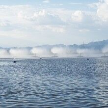 通過高速旋轉(zhuǎn)葉輪將水破碎至100微米粒徑小液滴,形成水霧,利用自然天氣條件進行蒸發(fā)。強制蒸發(fā)的作用:可增強蒸發(fā)效果14~30倍,蒸發(fā)同樣的廢水所需蒸發(fā)塘面積可降低到原來的1/10。