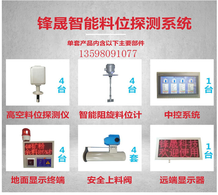 高空料位探測儀、阻旋式料位計、中控系統(tǒng)、地面顯示終端、安全上料閥、遠程顯示器六大子系統(tǒng)組成!