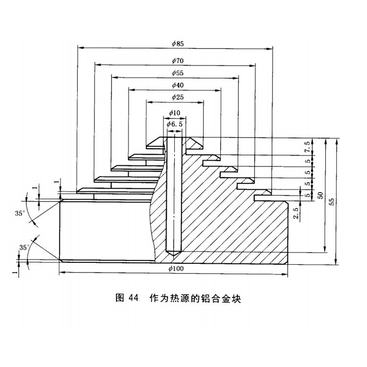 TDRZB-RY型作為熱源的鋁合金塊適用于板材表面耐干濕熱性能的測定,適用于GB/T17657《人造板及飾面人造板理化性能試驗方法》中的表面耐干熱性能和濕熱性能的測定。由滄州泰鼎恒業(yè)試驗儀器有限公司按照國家新標準制作而成,用于家具表面耐濕熱性或耐干熱性的測定。 TDRZB-RY型作為熱源的鋁合金塊參數: 底面直徑:Φ 100mm 高:55mm 材料:鋁合金 TDRZB-RY型作為熱源的鋁合金塊由滄州泰鼎恒業(yè)試驗儀器有限公司生產制造。適用于GB/T17657《人造板及飾面人造板理化性能試驗方法》中的表面耐干熱性能和濕熱性能的測定。滄州泰鼎恒業(yè)試驗儀器有限公司為您提供專業(yè)系統(tǒng)板材試驗儀器設備。 TDRZB-RY型作為熱源的鋁合金塊符合標準: GB/T 4893.2,GB/T 4893.3,GB/T 17657 標準熱源鋁合金塊符合國家標準GB/T 4893.2,GB/T 4893.3,GB/T 17657制作而成,TDRZB-RY型作為熱源的鋁合金塊用于家具表面耐濕熱性或耐干熱性的測定。