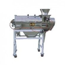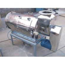本設(shè)備篩網(wǎng)為圓筒狀,置于機體內(nèi),物料通過螺旋輸送系統(tǒng)后,和氣流混合,霧化進入網(wǎng)桶內(nèi);通過網(wǎng)桶內(nèi)風(fēng)輪葉片使物料同時受離心力和旋風(fēng)推進力,從而迫使物料噴射過網(wǎng),由細(xì)料排出口排出,不能過網(wǎng)的物料沿網(wǎng)桶壁從粗料排出口排出。