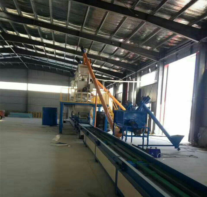 1、自動(dòng)化程度高:整條生產(chǎn)線采用PLC電腦自動(dòng)化控制,實(shí)現(xiàn)了自動(dòng)上模板、自動(dòng)涂脫模劑、自動(dòng)配料、自動(dòng)上漿、自動(dòng)鋪布、自動(dòng)攤平、自動(dòng)分切、自動(dòng)復(fù)壓、自動(dòng)接板等自動(dòng)化功能。