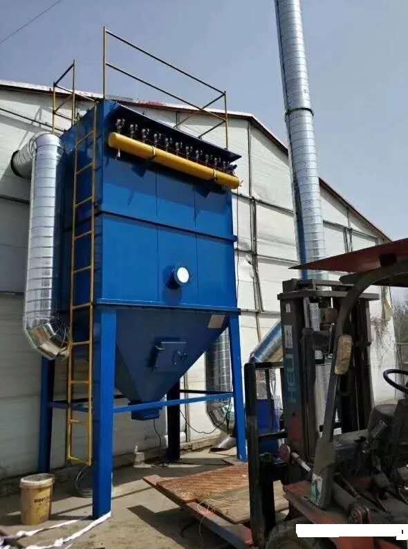 單機脈沖袋式除塵器具有操作簡單、清灰連續(xù)、阻力穩(wěn)定、過濾速度高、內(nèi)部無運動機件、設(shè)計簡單等特點,是一種高效能的布袋除塵器。脈沖布袋除塵器是一種下進風(fēng)的逆噴布袋除塵器。除塵器布袋利用壓縮空氣進行周期性噴吹,噴吹周期為30~60秒,噴吹時間0.1~0.2秒。