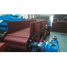 a 以0.02—0.12m/s速度運(yùn)轉(zhuǎn)為宜。切忌儲(chǔ)倉內(nèi)物料空倉。當(dāng)來料少時(shí),允許間歇操作。給料須均勻,避免大塊料沖砸槽體,而避免槽體的變形和板喂機(jī)的歪斜。