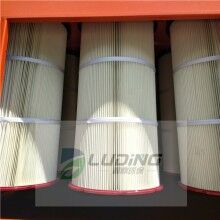 濾筒除塵器的氣流分布很重要,須考慮如何避免設備進口處由于風速較高造成對濾料的高磨損區(qū)域。氣流分布板用于濾筒式除塵器有獨特要求,氣流分布須十分穩(wěn)定和均勻。才有利于氣流的上升和粉塵的下降,氣流分布板開孔率35。根據(jù)計算,阻力系數(shù)<2,由此可見在氣流速度<0.8m/s的情況下,多孔氣流分布板可以滿足濾筒式除塵器的要求。