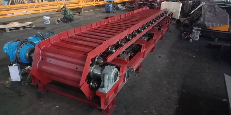 1、具有耐用時(shí)間長(zhǎng)、維護(hù)簡(jiǎn)單、維護(hù)成本低的優(yōu)點(diǎn)。鏈板與物料直接接觸部位的材料選用耐磨性鋼材,但是鋼材的硬度越高,可加工成型的難度也大,而且易開(kāi)裂,試驗(yàn)多種材料的結(jié)果,要既保證韌性同時(shí)也具有較高的耐磨性能。密封板式喂料機(jī)的耐磨方式是在每個(gè)鏈板上加上了弧面,固定兩根耐磨鋼條(方型或圓型)。物料從進(jìn)料口落入到鏈板上,由于物料自然具有的顆粒分級(jí)作用,細(xì)料和細(xì)碎料會(huì)自動(dòng)落到最下面的鏈板上面。上述的兩條鋼條有較硬的固定這些碎粉料而不會(huì)流走。在整個(gè)鏈板表面上就覆蓋有一層細(xì)碎物料,上面的大顆粒物料就不再與鏈板接觸,有效防止鏈板被磨損。合金構(gòu)造的鏈板及獨(dú)立的潤(rùn)滑系統(tǒng)以及設(shè)備的結(jié)構(gòu)和輸送形式使設(shè)備的維護(hù)及維修更加方便簡(jiǎn)單,可以單獨(dú)更換損壞的鏈板和槽板。